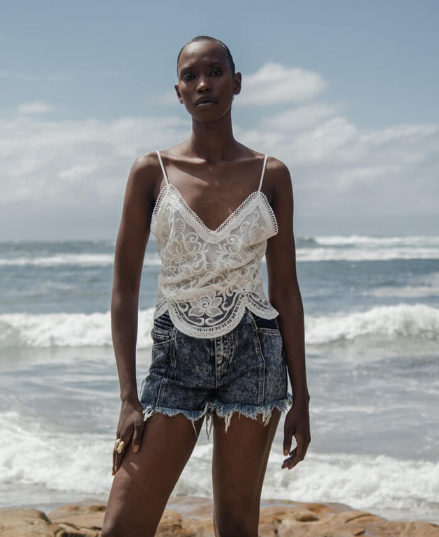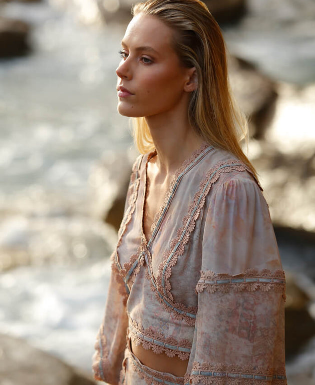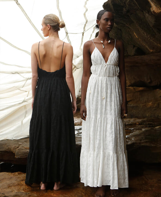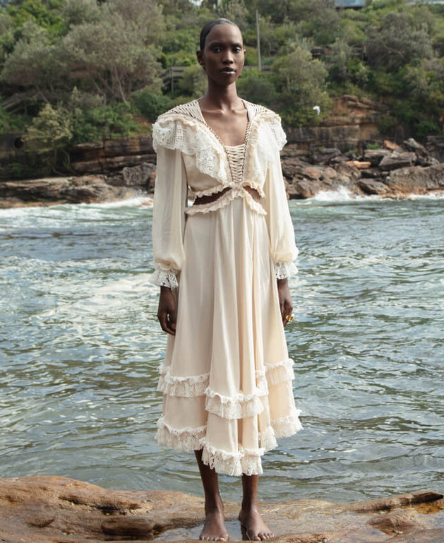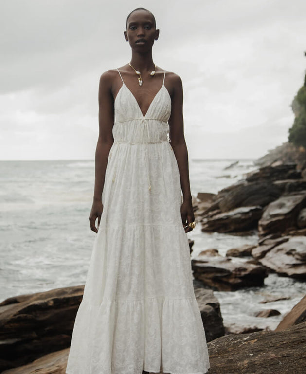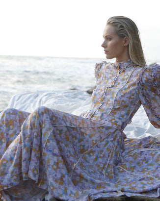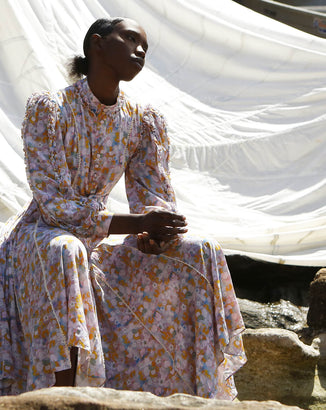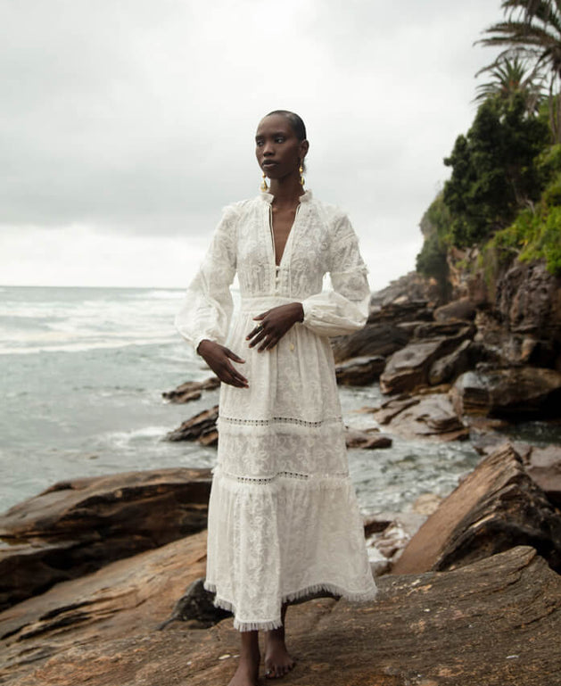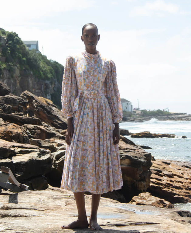 Discover a melody of artisanal prints, tiered ruffles, bold summer hues and artfully exaggerated silhouettes in our latest shoot by the seaside.