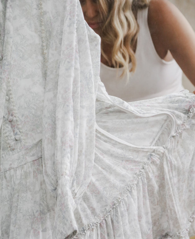 A Collection that pays homage to the great optimism of the ‘70s, a recollection to heavenly florals and an applaud to beautified wreckage. A line up of 46 styles, IXIAH showcase quality usage of natural fibres, delicate compositions and a new found aged aestheticism for romance and luxury bohemia.