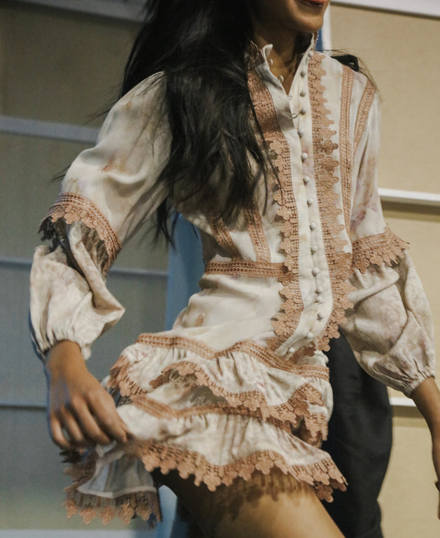 Captured moments before showtime are the season’s custom prints, details and techniques. An exploration of eternal elegance, raw beauty for the classic woman and the pursuit to empower.