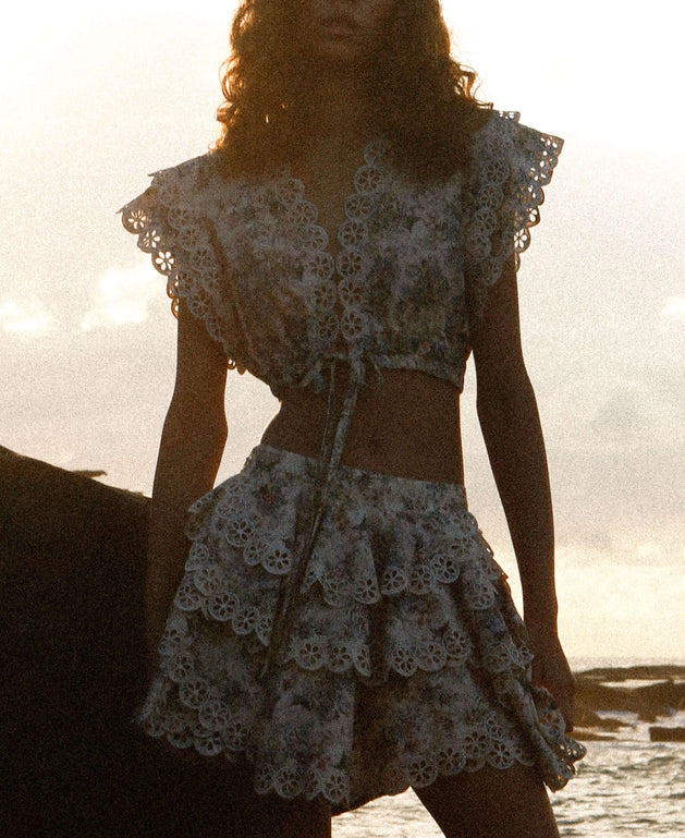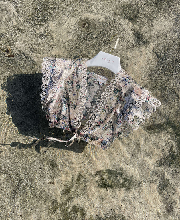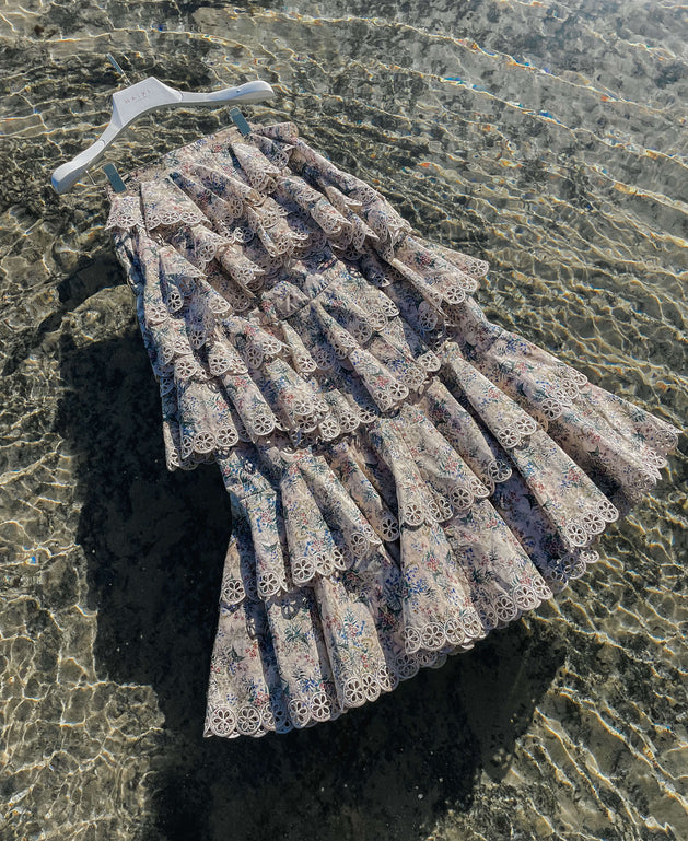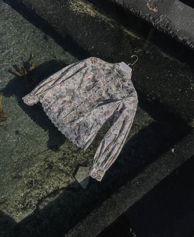 “This collection is a distinguished and refined look at creating wearable silhouettes in art forms. The creation of laser cut embroideries are elegantly placed onto vintage inspired prints. Only natural fabrications are used which was important to capture the raw aesthetic. This is a collection of great expanse for the label, of artistic freedom that seeks new horizons for the brand”