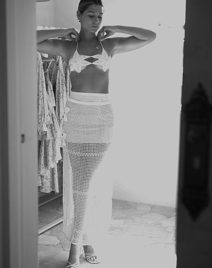 The collection introduces innovative techniques with strategic cut-outs, exaggerated proportions, and a fusion of boxy shapes and figure-hugging silhouettes, offering unparalleled versatility and dynamic styling options. Hand-drawn embroideries and intricate beadwork embellish panels, while bold prints and artisanal crochet accents infuse the pieces with feminine resilience.